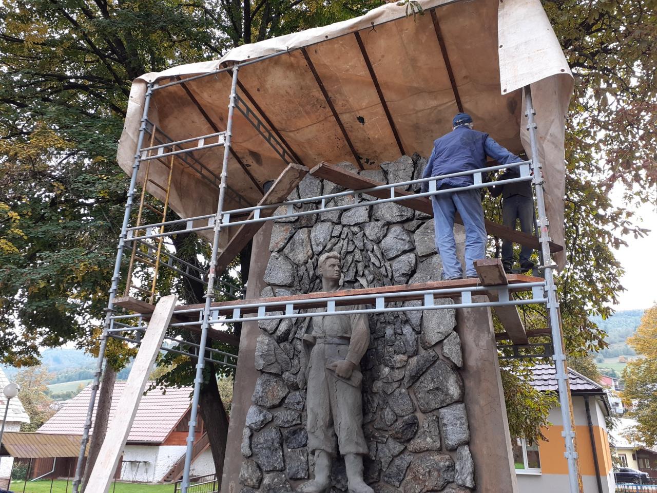 Iste si niekto kladie otázku: Prečo dlho očakávaná? Veď máme v obci ešte dosť iných problémov. Odpoveď znie – potrebujeme ho zachrániť pre ďalšie generácie. Bol už v zlom stave, o pár, možno málo rokov by sme už nemali čo zachraňovať. Roky, poveternostné podmienky a vandali pamätník nešetrili, preto je našou povinnosťou udržať ho a investovať financie do jeho opravy. Poslanci obecného zastupiteľstva jednohlasne podporili doplnenie chýbajúcich finančných prostriedkov k dotácii, ktorú sme získali, aby sa mohla začať okamžitá rekonštrukcia. Nakoľko sa jedná o kultúrnu pamiatku, príprava bola zdĺhavá, zahŕňala výskum, prípravu projektovej dokumentácie, vyjadrenie pamiatkového úradu, hľadanie realizátora rekonštrukcie. Upevnenie sochy nedovoľuje zobrať ju do ateliéru, preto bude celá rekonštrukcia prebiehať priamo na mieste kde stojí, pod „altánkom s lešením“, ktorý ju zakrýva. Prosíme obyvateľov, aby sa ničoho nedotýkali, nič nebrali a hlavne strážili deti, aby nedošlo k zraneniu detí a aby nedošlo k zmareniu práce reštaurátorov, ktorí pracujú pod vedením akademického sochára.